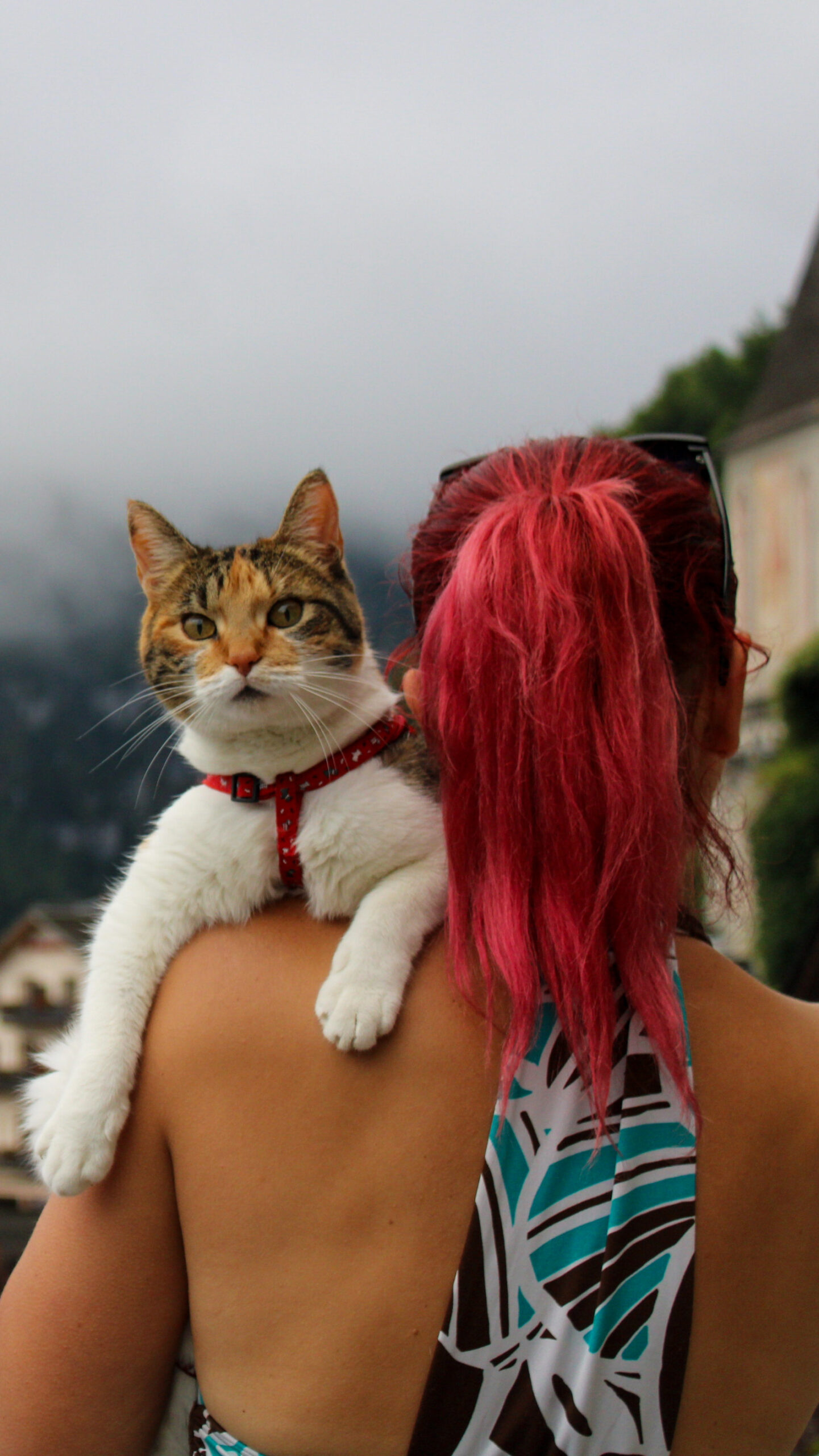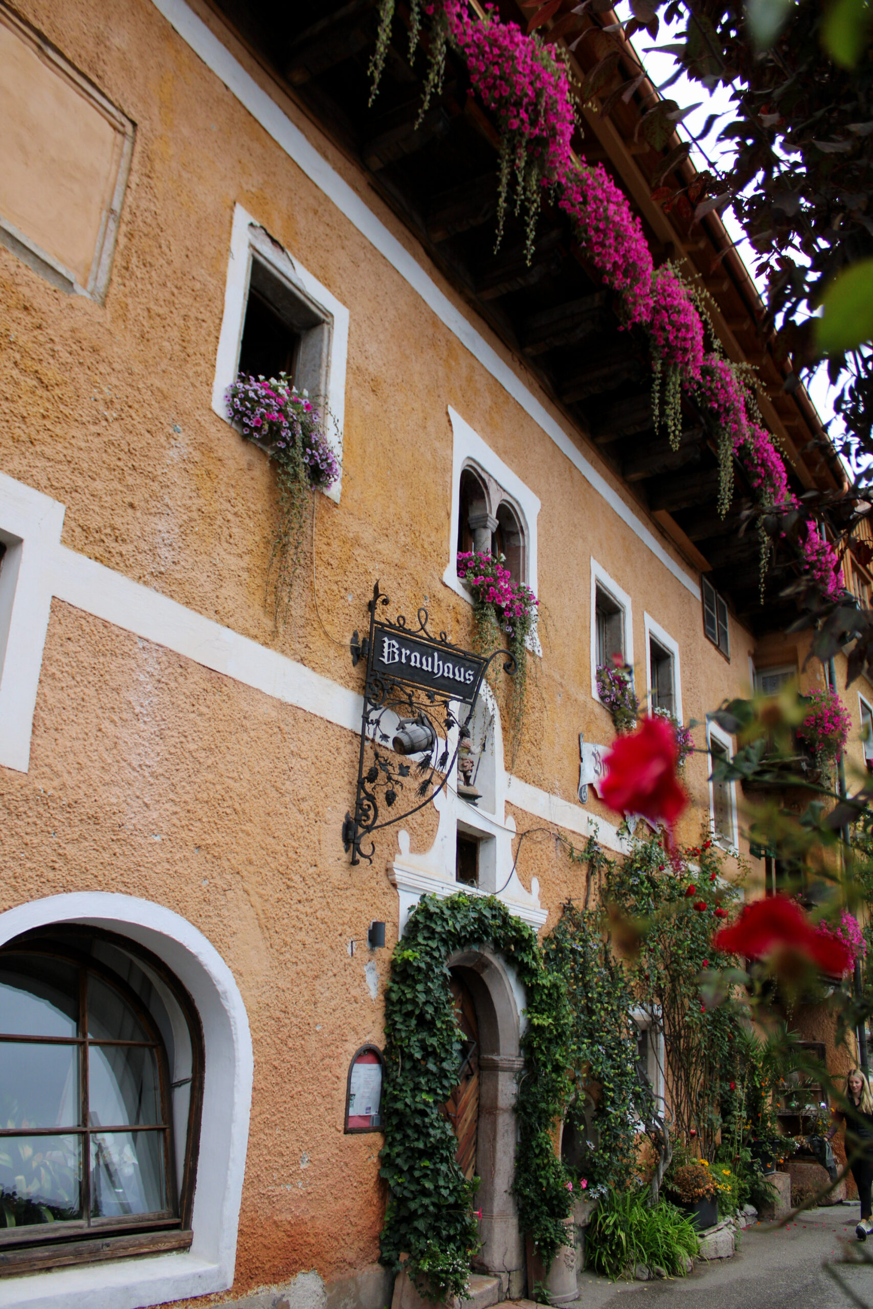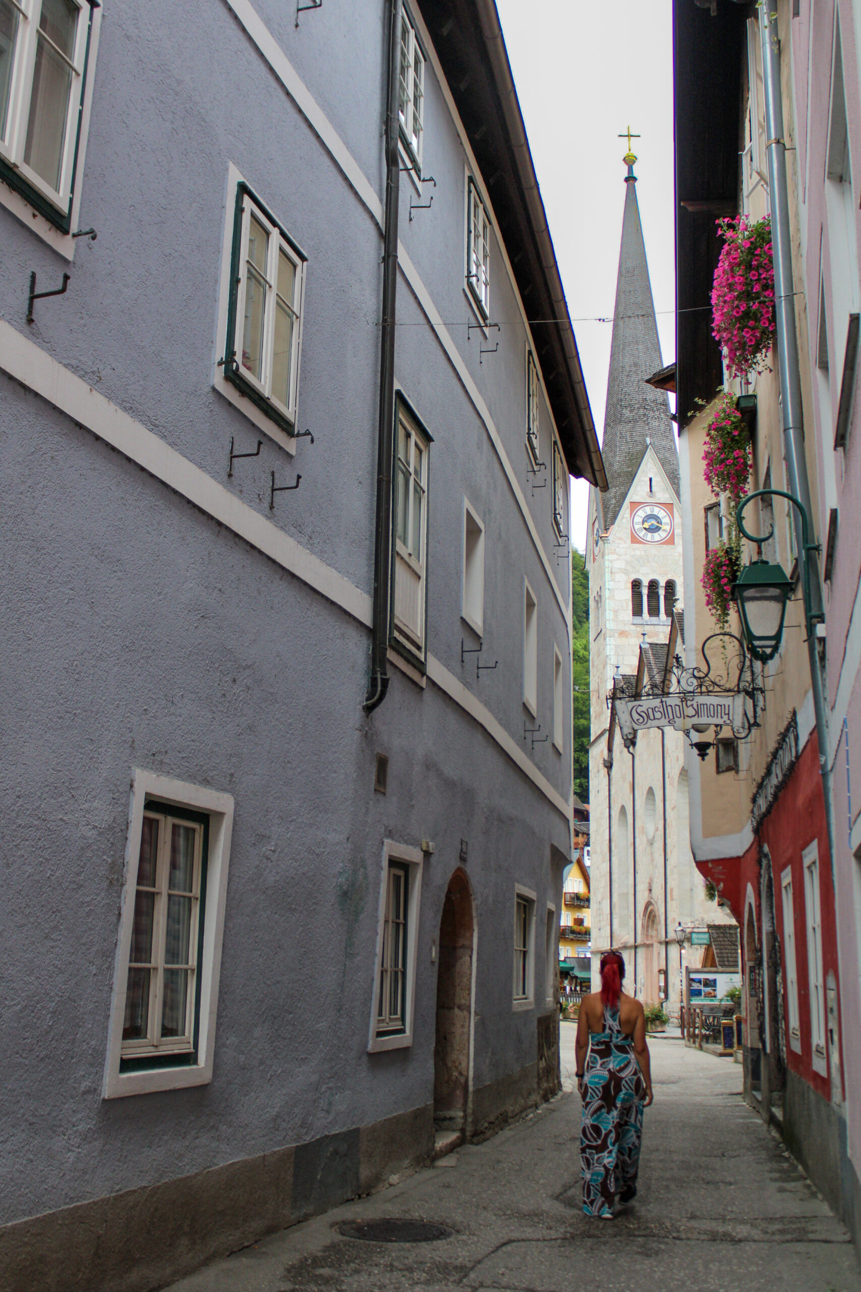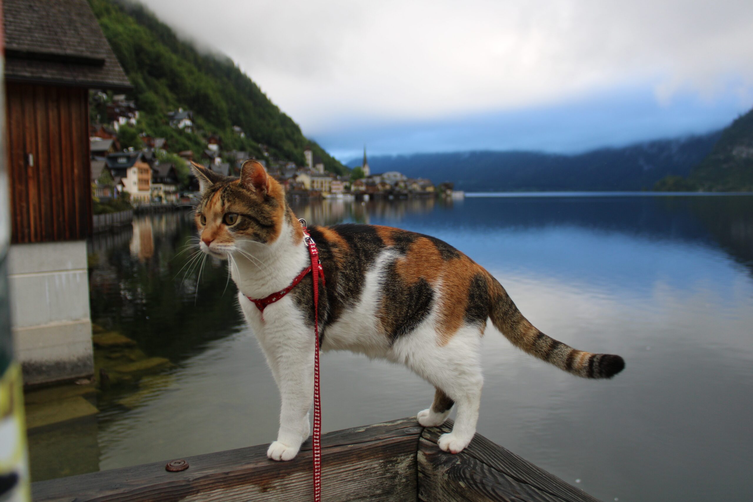 Kretali smo se uskim ulicama, blizu jedno drugome, jer Hallstatt ne voli razmake. Kuće su nam se naginjale kao stari znanci, cvijeće s balkona gledalo nas je znatiželjno, a Macika je ponosno koračala ispred nas, rep visoko podignut — kao mala vodičica kroz selo.